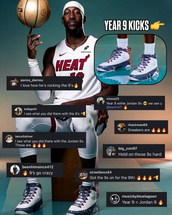 Vào ngày truyền thông năm nay, ngôi sao Heat Bam Adebayor đã mang đôi giày thể thao AJ9 của thương h...