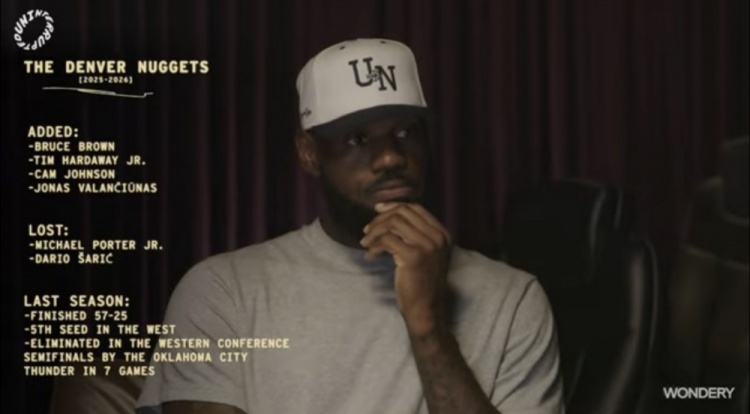 Nói về sự tiếp viện của Nuggets trong mùa giải, James nói: "Tôi nghĩ họ đã trải qua một mùa hè tuyệt vời. Họ giới thiệu nhiều cầu thủ phù hợp, nhiều cầu thủ đã được chứng minh. Tôi nghĩ Bruce Brown ban đầu là thành viên trong đội vô địch của họ và họ cũng giới thiệu một số mảnh ghép khác. Tất nhiên, họ đã mất Russ (Westbrook), Michael Porter Jr. và DeAndre Jordan, nhưng họ đã giới thiệu Valanciunas, người cũng là một ông lớn đã được chứng minh. Trước đây họ không muốn để trung tâm dự bị thi đấu, và tôi nghĩ bây giờ họ có Valanciunas, điều này sẽ không thành vấn đề. Tất nhiên, Rockets cũng đã thể hiện rất tốt và vừa thay thế KD (Durant). Nhưng dựa trên những cầu thủ có khả năng thích ứng mà Nuggets đã giới thiệu, tôi nghĩ công việc nghỉ hè của họ cực kỳ hiệu quả."