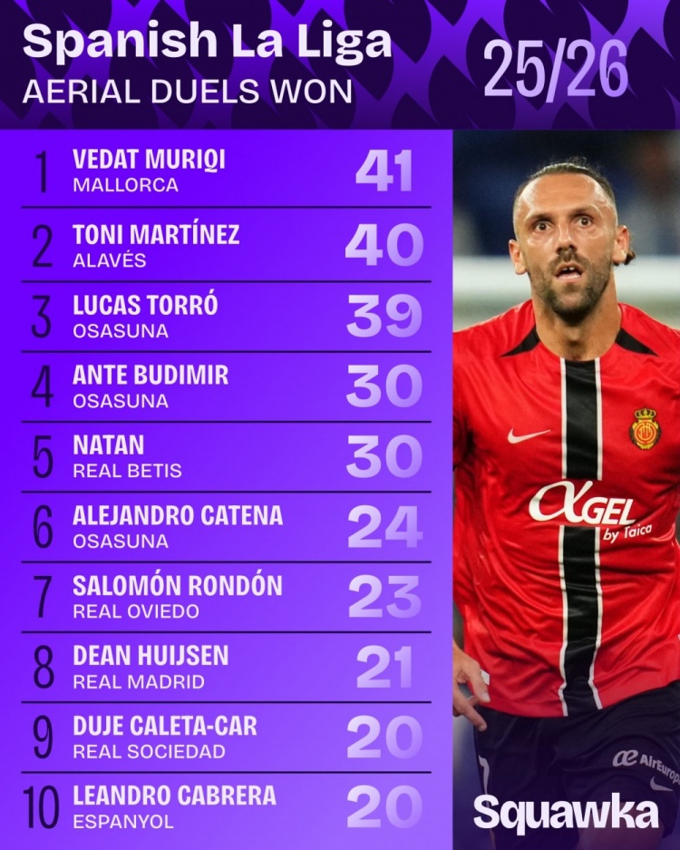 Một vài ngày trước, Squawka đã đếm số lượng các cuộc thi La Liga thành công trong mùa này và Heysen xếp thứ tám trong 21 lần.