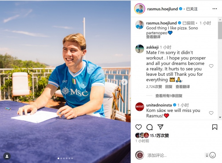 Hoylen đã cập nhật các bản cập nhật phương tiện truyền thông xã hội của mình và đăng ảnh anh ấy mặc áo Naples.